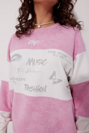 Демисезонный свитшот из трикотажа с эффектом пич MG Wear 2248 розовый_мрамор+молочный