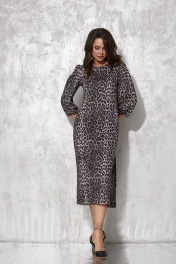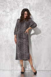 Миди-платье с разрезом и леопардовым принтом для особых случаев MG Wear 5105 леопард_с_блеском