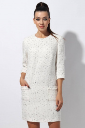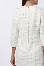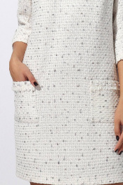 Платье женское прямого силуэта (на подкладке с накладными карманами на полочке. На карманах отделка в виде бахромы с декоративными бусинами. По спинке застежка на отделочную тесьму молния. Рукав втачной 3/4. Длина рукава 44 см. Длина платья по спинке 90 см. Платье изготовлено из высококачественной твидовой ткани в стиле Шанель. Подкладка ПЭ 100%. Изделие подойдет на рост 164-170 см.