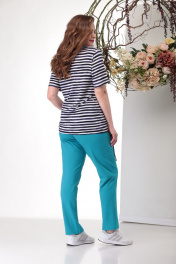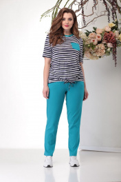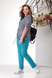 Костюм для активных женщин, прекрасно подходит как для спорта, так и для повседневной носки. Футболка выполнена из мягкого трикотажа в полоску, снизу на декоративной стяжке, определяющей посадку по бедрам. Яркая тесьма, а также карман сделают этот предмет одежды одним из самых любимых. Трикотажные брюки с добавлением вискозы, приятные к телу и прекрасно садятся по фигуре. Длина брюк по боковому шву 105+-1см., по шаговому шву 77+-1см.; длина футболки по спинке 67+-1см.