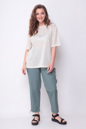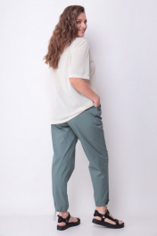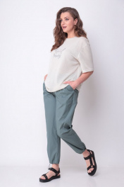 Отличный универсальный костюм на каждый день, где каждая вещь самостоятельная и может носиться с другими изделиями Вашего гардероба. Брюки высокой посадки свободного прилегания, пояс на резинке, с боковыми карманами, снизу затягиваются на резинку с фиксатором. Объемный джемпер свободного прилегания, прекрасно носится как навыпуск, так и заправленный. Выполнен из кружевного трикотажа, по переду нанесен контрастный принт, рукава укорочены. Длина джемпера от горловины 73 см, длина рукава 29 см. Длина брюк по боковому шву 101 ( ± 1 см), по шаговому 70 ( ± 1 см). Изделие подойдет на рост 170 см.