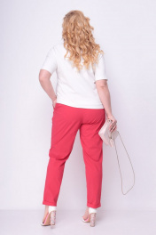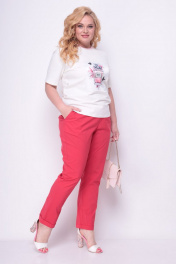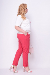 Универсальный облегченный женский брючный комплект. Футболка выполнена из приятной на ощупь ткани кулирка. Футболка свободного кроя, рукав укороченный. По переду украшен декоративной нашивкой. Брюки высокой посадки, по поясу на резинке, в боковых швах карманы, к низу немного заужены, на отложной манжете. Оба предмета данного комплекта отлично сочетаются между собой и смело могут создавать комбинации с другими вещами. Длина брюк по боковому шву 102 +-1 см., по шаговому шву 74 +-1 см. Длина футболки по спинке от горловины 63 +-1 см., длина рукава 29 см. Изделие подойдет на рост 170 см.