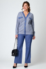 Комфортный и актуальный комплект, состоящий из джинсов и кардигана. Кардиган лаконичного дизайна, выполненный из мягкого трикотажа, который прост в уходе и комфортен в носке. Свободный крой со спущенной линией плеча, который подойдет для фигуры любого типа. Модель дополнена стильным V-образным вырезом горловины, длинным рукавом и украшен накладными клапанами и планкой из джинса. Застежка на пуговицах. Манжеты выполнены из основной ткани. Длинные брюки, немного клешеные к низу выполнены из средней плотности джинса. Средней посадки брюки на молнии по переду и сзади на резинке. Функциональные прорезные карманы в боковых швах. Такой комплект станет любимым в Вашем гардеробе, потому что это воплощение стиля и комфорта. Длина кардигана по спинке 66 +/-1 см, длина рукава 72 +/-1 см. Длина брюк по боковому шву 108 см, шаговому — 77 см. Изделие подойдет на рост 170 см.