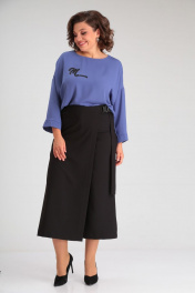 Блуза и брюки-кюлоты с принтом-глиттер и запахом Michel chic 1350 синий-черный