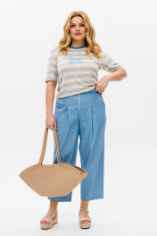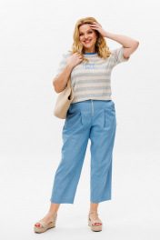 Летний брючный костюм из хлопка с принтом и коротким рукавом Michel chic 1370 голубой,серый