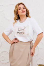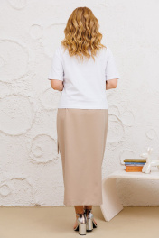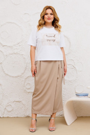 Юбочный комплект из хлопковой футболки и длинной юбки на запах Michel chic 1376 белый,бежевый