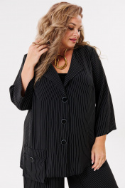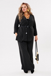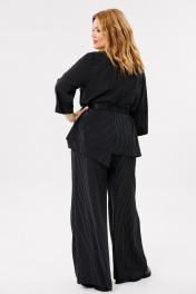 Демисезонный костюм из текстиля с асимметричным жакетом и брюками Michel chic 1386/1 черный,полоска