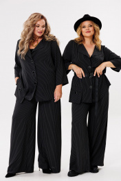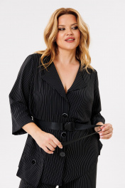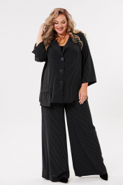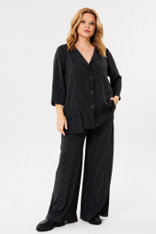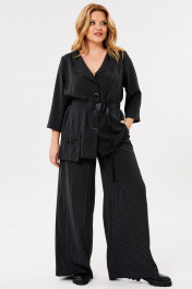 В мире моды всегда есть место для универсального и стильного наряда, и этот женский костюм больших размеров станет настоящей находкой для каждой женщины. Данный женский комплект подходит как для повседневной носки и работы, так и для торжественных событий. Костюм выполнен из материала средней плотности, что гарантирует комфорт и долговечность. Жакет женский имеет удлинённый силуэт с ассиметричным низом, распашной конструкцией и застежкой на петли-пуговицы. Спинка с центральным швом, а рукав втачной одношовный, что делает изделие практичным. Изюминкой этого жакета больших размеров становится настрочный карман-книжка, а также съемный пояс на застежке-карабине, который гармонично подчеркивает талию. Брюки женские с широкими штанинами (палаццо) обладают стильными карманами в боковых швах и притачным поясом на резинке, что добавляет комфорта в повседневной носке. Этот костюм легко комбинируется с различными топами и джемперами, позволяя создать уникальный и стильный образ для любого случая. Не упустите возможность добавить этот универсальный костюм в свой гардероб – он станет вашим верным спутником и в повседневной жизни, и на праздниках! Длина жакета повседневного составляет 79 см, а длина рукава от плечевого шва – 50 см. Длина брюк больших размеров по боковому шву – 113 см, что делает его удобным для роста до 170 см.