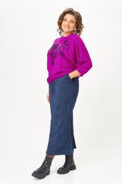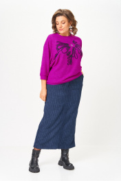 Этот элегантный и модный комплект станет ярким акцентом в вашем гардеробе! Комплект включает в себя яркий пурпурный джемпер с рукавами реглан «летучая мышь» и изящную юбку в темно-синих тонах, выполненную из мягкого, приятного к телу вельвета. ◾Пурпурный джемпер украшен изящной вышивкой, придавая образу оригинальность и шарм. Его рукава реглан «летучая мышь» создают ощущение легкости и современности, а яркий цвет подчеркнет вашу индивидуальность и добавит яркости в любой образ. ◾Юбка из плотного вельвета в рубчик не только выглядит очень стильно, но и визуально удлиняет силуэт, делая ваш образ более стройным и изящным. Эта универсальная модель отлично садится по фигуре, подчеркнет достоинства и обеспечит комфорт в течение всего дня. Весь этот ансамбль — идеальный выбор для тех, кто ценит современный стиль, качество и комфорт. Дополнив его подходящими аксессуарами, вы легко создадите эффектный образ для повседневных дел, деловых встреч или особых мероприятий. Такой комплект подчеркнет вашу индивидуальность и позволит выглядеть безупречно в любой ситуации. Преобразите свой гардероб уже сегодня — выберите универсальный и яркий костюм, который всегда поможет оставаться в тренде! Длина джемпера по спинке 65 см+\- 1 см, длина рукава от горловины 62 см +\- 1 см. Длина юбки по боковому шву 96 см+\- 1 см. Изделие подойдет на рост 170 см.