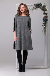 Платье А-образного силуэта выполнено из мягкого трикотажа средней плотности, простой крой и комфортность изделия сделают его незаменимым. Прекрасно дополняется различными аксессуарами и сочетается с разной по стилю обувью. Боковые швы, а также центральная часть рукава от горловины украшены контрастной черной тесьмой. В боковых швах карманы. Сзади от горловины декоративная молния облегчающая одевание платья. Длина по спинке 95см., длина рукава 54см.