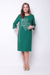 Простое, но нарядное, за счет декоративной вышивки платье, выполнено из плательно-костюмной ткани. Платье, благодаря своей универсальности отлично подойдет для похода в офис, а также для любых торжественных мероприятий. Прямой силуэт, рукав 3/4, круглая горловина, классическая длина ниже колена, по спинке выполнена шаговая шлица. Манжет рукава декорирован тесьмой. Платье смело сочетается с любой обувью вашего гардероба. Длина изделия по спинке 101см, длина рукава от горловины 53см. Изделие подойдет на рост 170см.