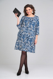 Летнее платье из трикотажа с карманами и молнией Michel chic 2121 синий-леопард