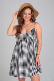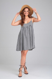 Летний сарафан в черно-белую клетку с глубоким вырезом и открытой спиной Michel chic 2129 черно-белый