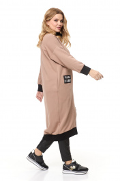 Универсальное трикотажное платье выполнено из футера трехнитка. Платье-кардиган станет идеальным и интересным изделием для создания повседневного образа. Платье длиной за колено, с центральной застежкой на молнию по переду, воротник — высокая стойка. Спинка у изделия цельная, плечо спущено, рукав втачной длинный одношовный на манжете, в боковых швах два функциональных карамана. Воротник, низ и манжеты выполнены из отделочного контрастного трикотажа. Декором платья служит нашивка и клапан-обманка, украшенный лентами. Платье-кардиган прекрасно сочетается с любой по стилю обувью, а также его с легкостью можно комбинировать с юбками и джинсами. Длина изделия по спинке 119 см (+-1 см), длина рукава от горловины 69 см (+1 см). Изделие подойдет на рост 170 см.