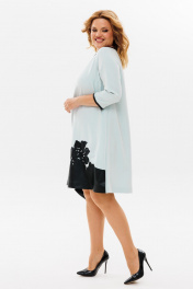 Демисезонное платье трапеция из текстиля с вышивкой из эко-кожи Michel chic 2140 голубой