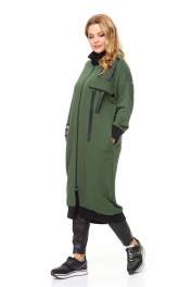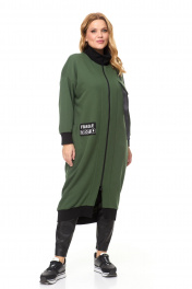 Универсальное трикотажное платье выполнено из футера трехнитка. Платье-кардиган станет идеальным и интересным изделием для создания повседневного образа. Платье длиной за колено, с центральной застежкой на молнию по переду, воротник — высокая стойка. Спинка у изделия цельная, плечо спущено, рукав втачной длинный одношовный на манжете, в боковых швах два функциональных карамана. Воротник, низ и манжеты выполнены из отделочного контрастного трикотажа. Декором платья служит нашивка и клапан-обманка, украшенный лентами. Платье-кардиган прекрасно сочетается с любой по стилю обувью, а также его с легкостью можно комбинировать с юбками и джинсами. Длина изделия по спинке 119 см (+-1 см), длина рукава от горловины 69 см (+1 см). Изделие подойдет на рост 170 см.