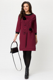 Платье демисезонное прямого кроя с вышивкой и меховыми пушками Michel chic 2153 бордовый