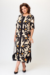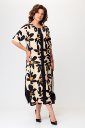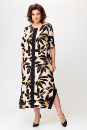 Платье в стиле casual предназначено для повседневной носки, прекрасно сочетается с любой по стилю обувью. Платье выполнено из вискозной ткани, свободного кроя, ниже колена, рукав укорочен. В качестве декора по переду изделия — вставлена планка из контрастной ткани, на планке нанесены небольшие стразы. По бокам изделия — разрезы, которые также обработаны контрастной тканью, в цвет декоративной планки. Также в изделии имеются боковые карманы. Длина изделия по спинке — 121 см(± 1 см), длина рукава — 32 см(+-1 см). Изделие подойдет на рост 170 см.
