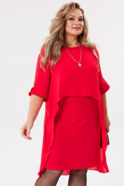 Платье двухслойное с удлиненной спинкой и круглой горловиной Michel chic 2169 красный