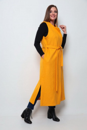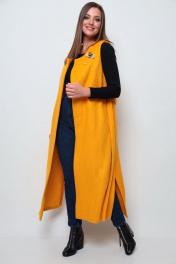 Длинный жилет «must have» в гардеробе этого сезона. Универсальное изделие подойдет к любому стилю одежды. Можно носить как поверх худи, так и классической рубашки, водолазки, как с кроссовками, так и на шпильке. Жилет выполнен из пальтовой ткани без подкладки, в боковых швах есть функциональные карманы, а низ дополняют разрезы. В комплект входит нарядная брошка и пояс из основной ткани. Длина изделия по спинке 127 (+/- 1 см).