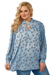 Блуза свободного кроя из шифона с женственной сборкой Michel chic 760 голубой