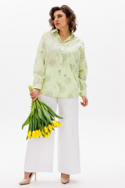 Нежная блузка свободного кроя, которая прекрасно вольется в повседневную жизнь и станет одной из любимых базовых вещей в Вашем гардеробе. Блузка выполнена из хлопковой ткани с имитацией «помятости» в цветок с ненавязчивым блеском. Спущенный длинный рукав, присобранный на манжету с пуговицами. По переду блузка застегивается на пуговицы, украшена накладным карманом. Спинка прямая, воротник классический. Изделие хорошо сочетается как с брюками, так и с юбками. Блузку можно носить как навыпуск, так и заправленной. Светлый цвет придаст Вашему образу женственности и нежности. Длина изделия по спинке 77 (+/- 1 см). Длина рукава от горловины 77 (+/- 1 см). Изделие подойдет на рост 170 см.