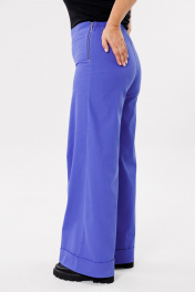 Женские брюки-палаццо – практичный вариант для прогулочных или офисных комплектов, который выгодно смотрится с белыми или цветными блузками, топами, футболками, пиджаками. Изделие выполнено из хлопкового однотонного джинса средней плотности. Брюки идеально сидят на любой фигуре, подчеркивая все достоинства, скрывая недостатки. Изделие на притачном поясе с резинкой сзади, сбоку застежка на молнию. По низу брюк цельнокроеная манжета из широкой подгибки. С данными брюками можно смело создавать стильные образы и они станут незаменимой базой в Вашем гардеробе. Длина брюк по боковому шву 108 см, по шаговому 79 см. Изделие подойдет на рост 170 см.