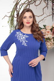 Базовое платье, которое в зависимости от сочетания с другими элементами гардероба применимо как для офиса, так и фуршета. Выполнено из костюмно-плательной ткани в мелкий рубчик. По переду украшено белой цветочной вышивкой, что придаёт платью особую нежность. Рукав 3/4, подрез на уровне талии, юбка сверху имеет встречные складки, которые скрывают возможные неточности фигуры. В боковых швах карманы. По спинке потайная молния. Сзади разрез. Длина изделия по среднему шву спинки 103+-1см., длина рукава от плеча 44см.