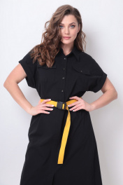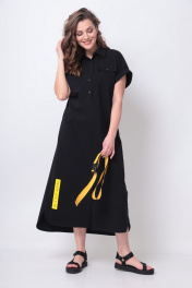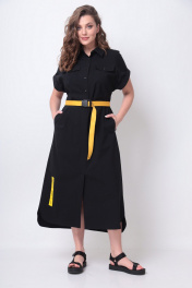 Платье рубашечного типа с поясом и разрезом Michel chic 993/2 черный,желтый