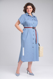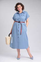 Платье-рубашка из хлопка с принтом и складками Michel chic 993/2 деним