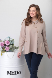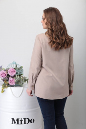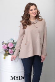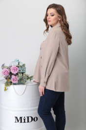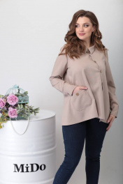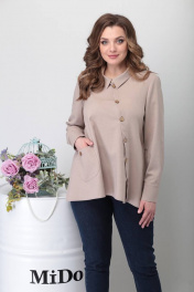 Блуза: трапециевидный крой, длина изделия, воротник отложной с острыми углами, рукав длинный. Модель ростом 1.70 м и носит 50 р-р.