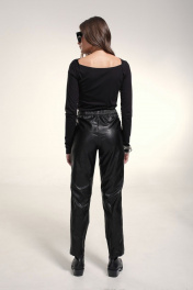 Брюки из черной "дышащей" экокожи, на хлопковой основе, с декоративными элементами. На фото - модель в гольфе 1061 Бали и брюках 1052 Берлин Дополнительное описание Материал: Высота посадки: Завышенная Покрой: Свободный Подкладка: нет Посадка по фигуре: универсальная Рисунок: однотон По назначению: Повседневные, офис Крой брючин: Зауженный Конструктивные элементы: Резинка Особенности ткани: экокожа на хлопковой основе Фактура материала: Кожаный Тип карманов: в шве Вид застежки: Пуговицы Комплектация: брюки