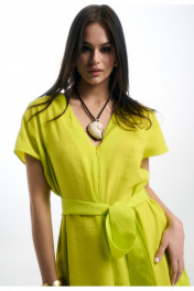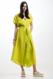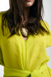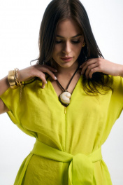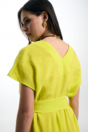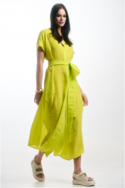 Комбинезон свободного кроя с V-образным вырезом горловины. Потайная молния в цвет ткани по среднему шву переда, карманы в боковых швах, брюки с ассиметричной линией низа и разрезами. Пояс в комплекте. Размерный ряд S (42,44,46) M (48,50,52).