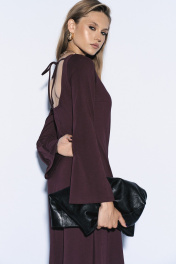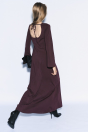 Платье женское приталенного силуэта, расклешенное книзу. Рукав длинный с расширением. Вырез на спине полукруглый на завязках. Размер S (42,44,46), М (48,50,52)