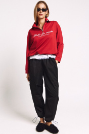 Джемпер в правильном красном цвете "скарлетт" со стойкой и молнией.