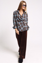 Рубашка из мягкой хлопковой фланели с асимметричной застежкой на "липучке", и декоративными складками. Свободный силуэт. Два универсальных размера - S (соответствует 42-44-46), L (соответствует 48-50-52)