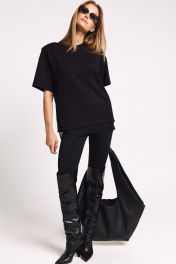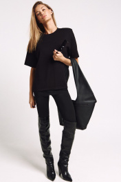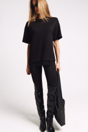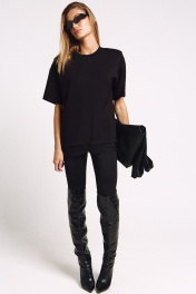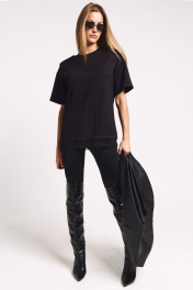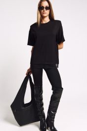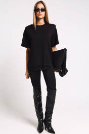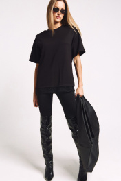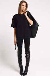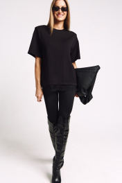 Футболка женская, удлиненная, из плотного трикотажа, с декоративными плечами и француским кружевом по низу. Два универсальных размера - S (соответствует 42-44-46), L (соответствует 48-50-52)