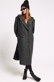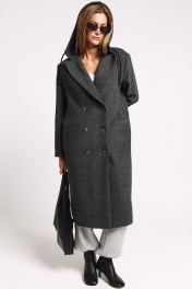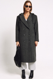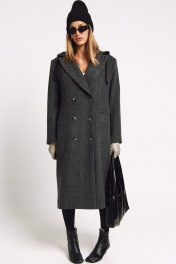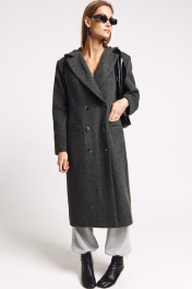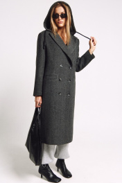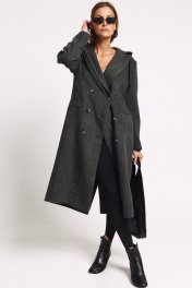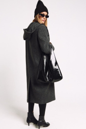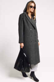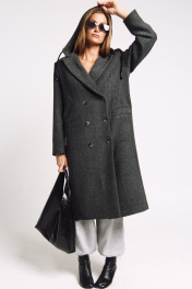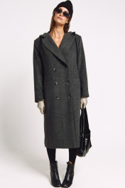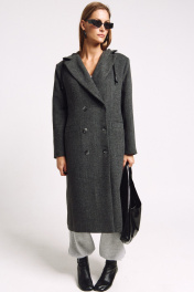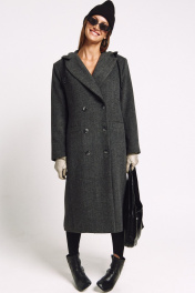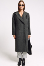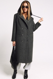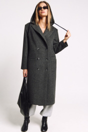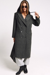 Жакет из пальтовой ткани, удлиненный, на подкладке. Капюшон конструктивно из верхней части воротника