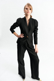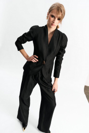 Брюки-палаццо умеренной ширины с акцентной складкой, переходящей на пояс