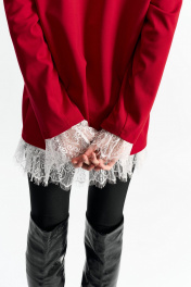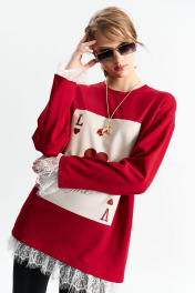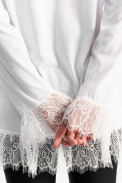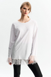 Удлиненный лонгслив из трикотажной вискозы, с французским молочным кружевом на сборке по низу рукава и низу изделия. Красивый нижний слой под лонгсливы, свитера, жакеты. S (42-44-46), L (48-50-52)
