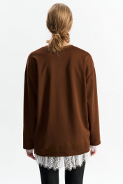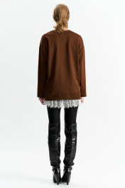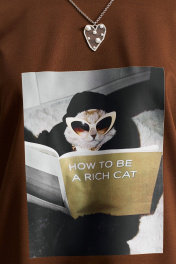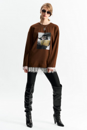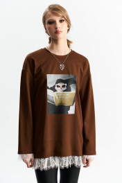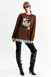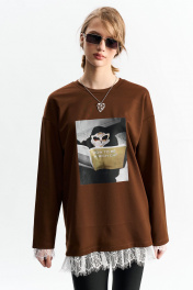 Лонгслив из плотного трикотажа цвета корица с печатью. Свободный крой.