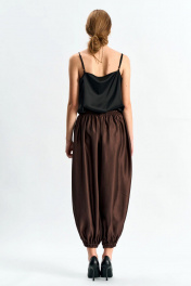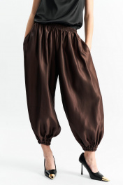 Брюки-"алладины", самый актуальный крой сезона. Пояс на резинке, низ брюк на резинке. Материал - смесовая вискоза с красивым изящным блеском. Два универсальных размера - S (соответствует 42-44-46) и L (48-50-52)