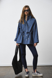 Жакет-парка из фактурного джинса с эффектом замши. Воротник-стойка. Широкий рукав, ширина которого регулируется кнопками. Свободный силуэт, ширина талии регулируется кулиской. Два универсальных размера - S (соответствует 42-44-46), L (соответствует 48-50-52)
