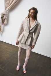 Жакет - прилегающего силуэта со складками по талии и рукавами О-силуэта.