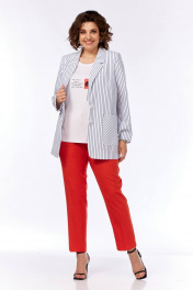 Брюки, жакет, футболка Милора-стиль 1220 крупная_полоска - фото 1