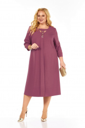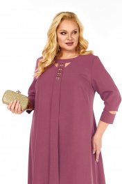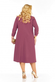 Нарядное платье длины миди, А-образного силуэта, без подкладки. Вырез горловины V-образный c дополнительными декоративными деталями – планками, украшен нашивной золотой деталью. На полочке спереди застрочена вертикальная складка, которая создает эффект удлинения силуэта. Рукава длиной ¾, с декоративными вырезами на внешней стороне руки. С карманами-хулиганами в боковых швах. Спинка со швом. Длина платья – 110 см, длина плечевого шва – 10 см, длина рукава – 48 см.