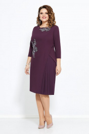 Оригинальное платье полуприлегающего силуэта, слегка расширенного к низу, с фантазийным вырезом горловины, аппликацией из кружева и вставкой из шифона с декоративными складками. По переду платье с полурельефами, по спинке с талиевыми вытачками и средним швом, который заканчивается шлицей. Потайная застежка-молния в среднем шве спинки. Длина рукава (в 52р.) - 30см, Ширина рукава-19, Ширина груди-53, Ширина талии 47, Ширина бедер-57 Длина изделия - 100