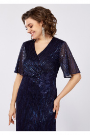 Элегантное, женское платье полуприлегающего силуэта, выполнено из плиссированной ткани с пайетки, на трикотажной подкладке. Лиф платья отрезной по линии талии и декорирован аппликацией, горловина V-образной формы, обработана подкладкой. Юбка платья расклешенная к низу, на подкладке, с разрезом по одной стороне. Спинка выполнена из основной ткани, с подрезом по спинке, рукав втачной, укороченный. Элегантное женское платье идеально для любого мероприятия! в 52р. Ширина груди- 53см, Ширина талии -47см, Ширина бедер- 58см, длина рукава- 29см., ширина рукава 22см.
