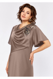 Эффектное, женское платье полуприлегающего силуэта выполнено из атласа. На полочке выполнены ассиметричные подрезы, горловина свободного покроя-«качели», декорирована съемным цветком. Спинка также с ассиметричными подрезами, рукав втачной, укороченный. Эффектное и стильное платье с ярким декором отличный вариант для любого мероприятия! в 52р. Ширина груди- 53см, Ширина талии -52см, Ширина бедер- 60см, длина рукава- 30см, ширина рукава 25см.