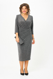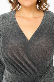 Женское платье полуприлегающего силуэта, выполнено из люрексовой ткани с леском, хорошо тянется. Горловина платья V-образной формы, по линии талии выполнен подрез со складками на юбке платья. Лиф платья присборен по линии талии. Рукав втачной, оптимальной длины, выполнен из основной ткани. Спинка платья со средним швом и вытачками. Эффектное платье из стрейчевой ткани отличный выбор для любого мероприятия! в 52р. Ширина груди- 52см, Ширина талии -46см, Ширина бедер- 56см, длина рукава- 47см, ширина рукава 18см.